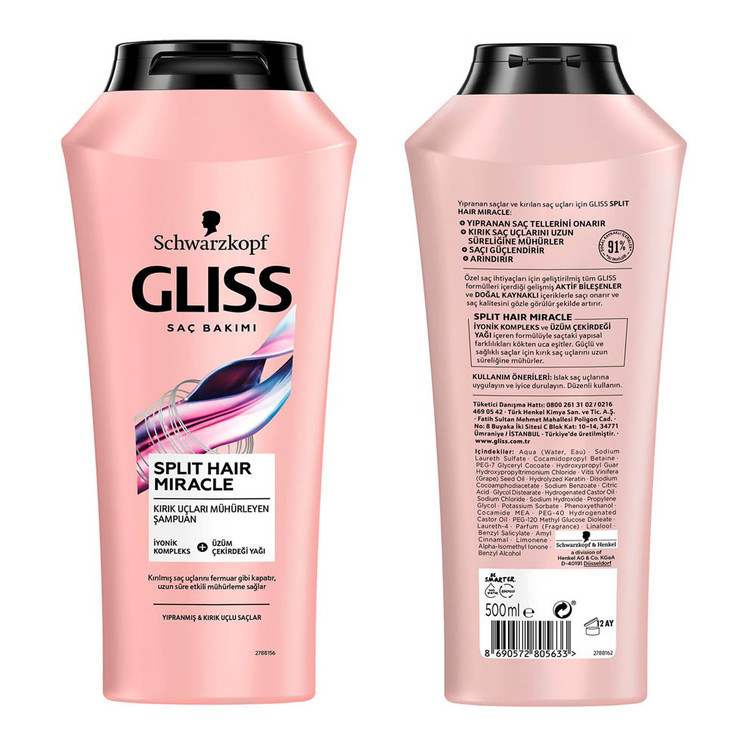 شامپو گلیس مدل Split Hair Miracle قدرت زیادی در ترمیم و احیا موهای آسیب دیده دارد و قسمت های آسیب دیده موها را به خوبی درمان و بازسازی میکند.