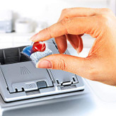 یکی از قرص ها را درون جا قرصی قرار دهید. توجه کنید که برای استفاده، لازم نیست که روکش پلاستیکی آن را جدا کنید؛ چرا که این روکش قابل حل بوده و هنگام شستشو کاملا در آب حل می شود.