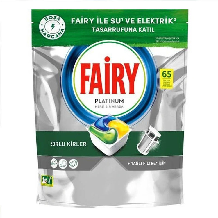 قرص ماشین ظرفشویی فیری مدل Platinum بسته 65 عددی دارای ویژگیهای زیر است: