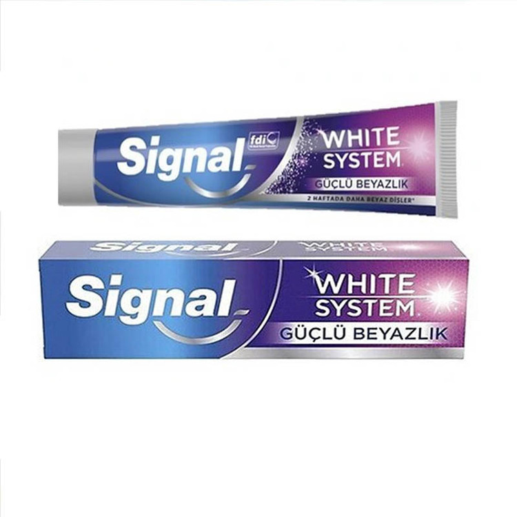 معرفی خمیر دندان سفید کننده سیگنالخمیر دندان سفید کننده سیگنال سری White System مدل Guclu Beyazlik با حجم 75 میل، محصولی با قدرت سفیدکنندگی بالا است که به شما در داشتن لبخندی درخشان و زیبا کمک میکند. این خمیر دندان با استفاده از مواد مغذی و تکنولوژیهای جدید، لکههای دندان را به طور عمیق از بین میبرد و دندانهای شما را سفیدتر و درخشانتر میکند.