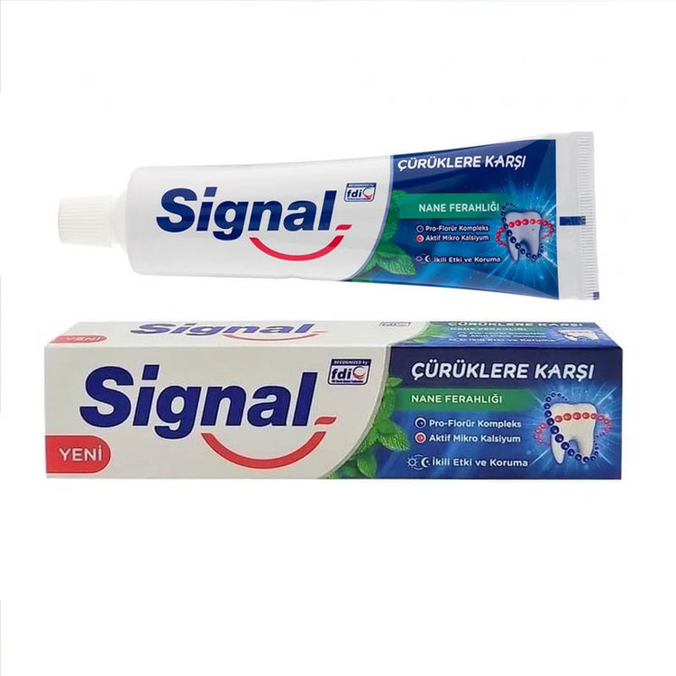 خمیر دندان سیگنال مدل NANE FERAHLIGI با حجم 100 میل، با داشتن ترکیبی از مواد طبیعی و موثر، به شما کمک میکند تا دندانهای خود را به طور کامل تمیز کنید، بوی بد دهان را کاهش دهید و علائم بیماریهای لثه و دهان را کاهش دهید. با داشتن فلوراید سدیم، این خمیر دندان به عنوان یک ماده اصلی برای جلوگیری از تخریب دندانها استفاده میشود. همچنین، با داشتن دیگر، در مواد طبیعی مانند دیپنتنول، عصاره نعناع و عصاره چای سبز، این خمیر دندان به عنوان یک ماده ضد عفونی کننده و ضدبویایی برای دهان و لثه استفاده میشود. این محصول به طور کلی از نظر بافت نرم و خوشمزه بوده و برای استفاده روزانه بسیار مناسب است.