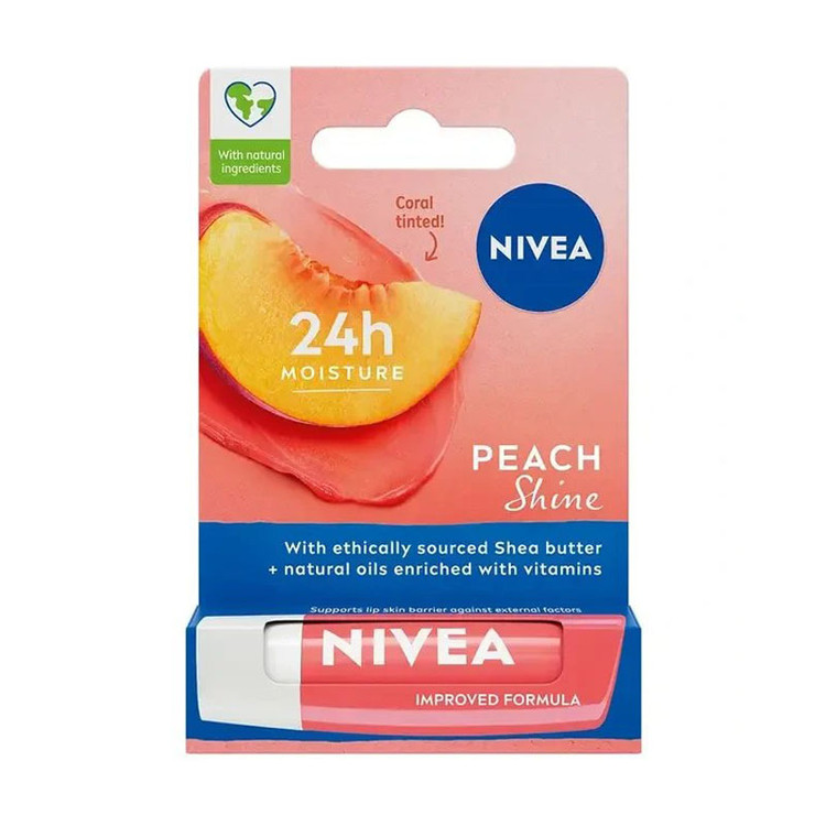 بالم مرطوب کننده و محافظ لب نیوآ (NIVEA) با طعم هلو. لب های خود را با عطر و درخشش هلویی کرم مراقبت از لب NIVEA PEACH SHINE نوازش کنید! فرمول منحصر به فرد آن، غنی شده با رنگدانه های درخشان، فوراً روی لب های شما ذوب می شود و آنها را به مدت 24 ساعت مرطوب نگه می دارد. به طور یکنواخت روی لب های شما پخش می شود بنابراین برای استفاده از آن نیازی به آینه ندارید. لب هایی درخشان و نرم در تمام طول روز فراهم می کند!