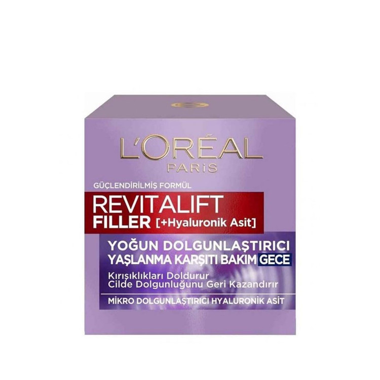کرم شب ضد پیری و ضد چروک لورال Loreal مدل Revitalift Filler حاوی هیالورونیک اسید حجم 50 میل