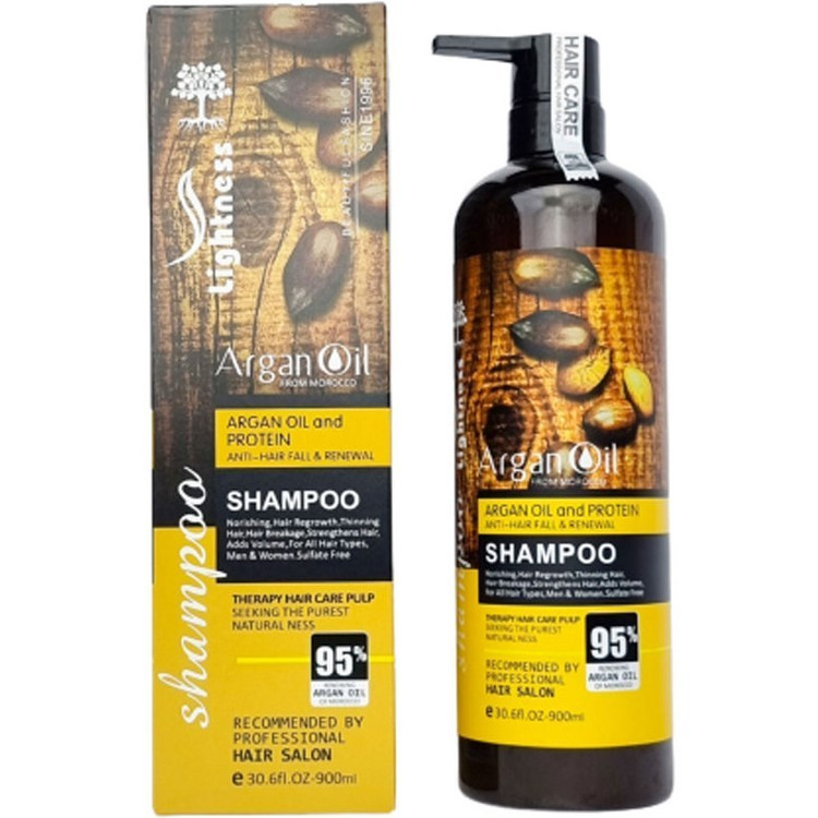 این شامپو فاقدسولفات لایتنس با دارا بودن 95% روغن آرگان طبیعی مراکش، بازسازی کننده و ضد ریزش موها است.این شامپو از ریزش و شوره موها جلوگیری کرده و آبرسان انواع مو به ویژه موهای خشک و آسیب دیده است.روغن آرگان با تنظیم رطوبت طبیعی مو باعث رفع خشکی و موخوره نیز میشود.