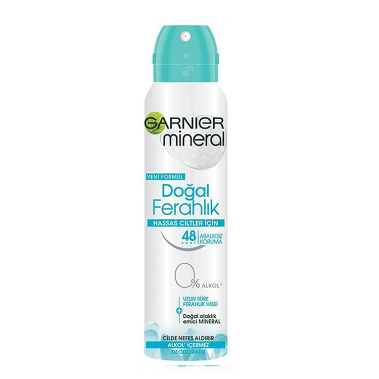 اسپری ضد تعریق Garnier mineral مدل Dogal Ferahlik حجم 150 میلی محصولی از شرکت فرانسوی گارنیر برای پوست حساس