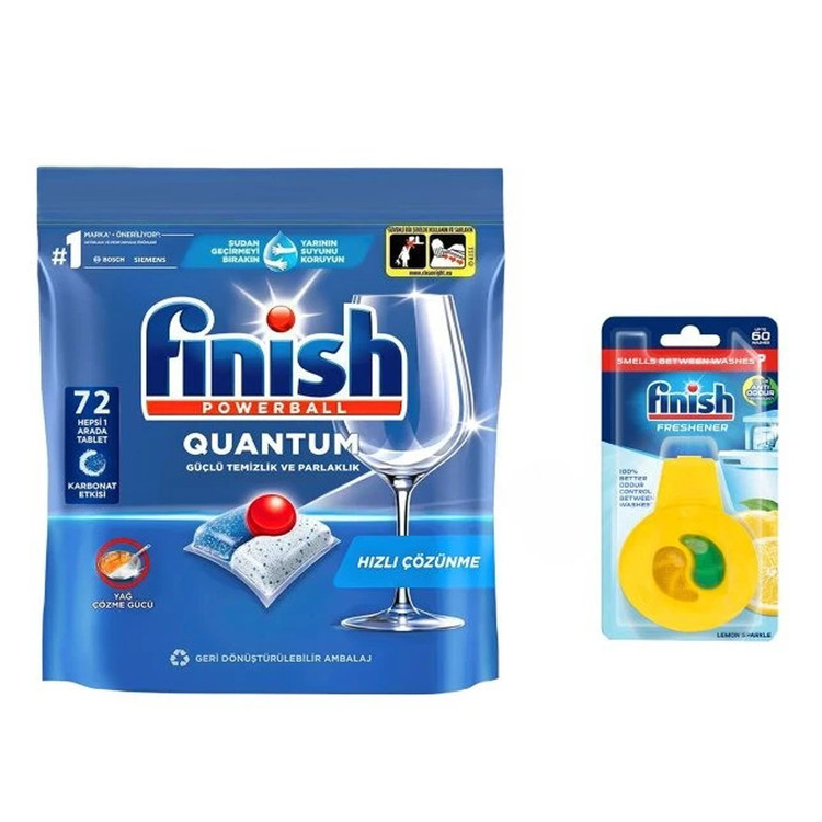 قرص ماشین ظرفشویی فینیش مدل Quantum Hepsi 1 Arada بسته 72 عددی به همراه بوگیر ظرفشویی فینیش مدل لیمو مجموعه 2 عددی