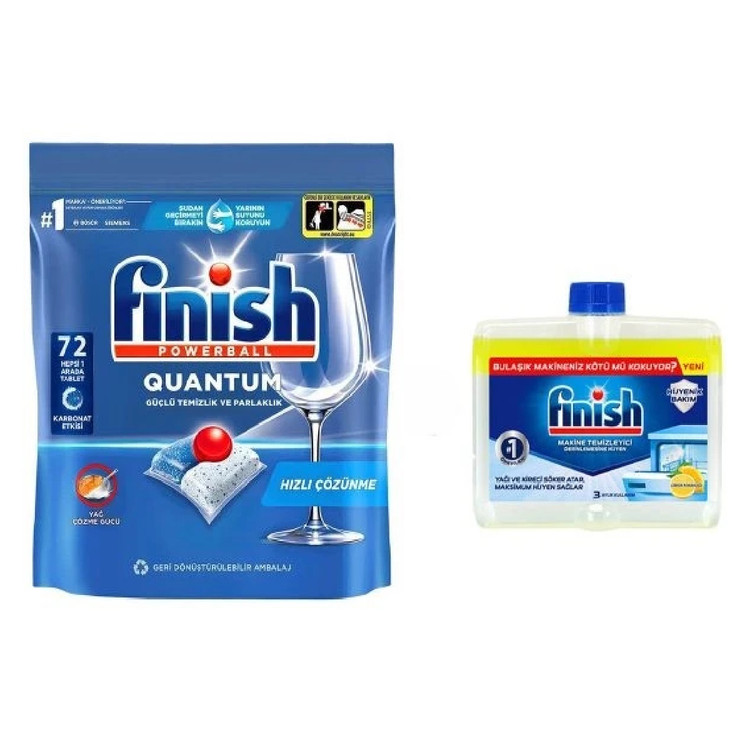قرص ماشین ظرفشویی فینیش مدل Quantum Hepsi 1 Arada بسته 72 عددی به همراه جرمگیر ظرفشویی فینیش مدل لیمو حجم 250 میل مجموعه 2 عددی