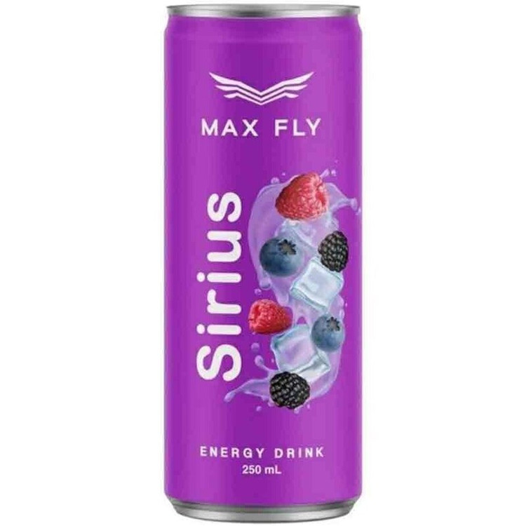 نوشیدنی انرژی زای ماکس فلای MAX FLY SIRIUS با طعم انواع توت جنگلی 250 میل (24 تایی)